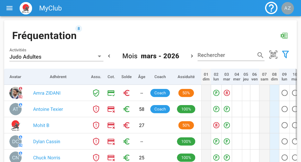 Vous passez plus de temps dans les tâches administratives que dans votre club ? Un simple scan de la carte de membre enregistre automatiquement les présences. Fini les listes illisibles, mouillées ou perdues au fond du sac.